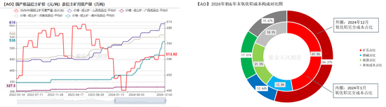 边际成本的选择:供应的限制导致氧化铝在2024年,尤其是下半年,进入到畸形定价阶段。我们预计氧化铝在明年二季度走向供应过剩后,恢复成本定价机制。考虑25年新投产能均为进口矿石产线,高边际成本采用山西使用几内亚矿产的氧化铝成本。