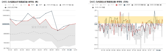 几内亚今年矿石发运的“雨季格外漫长”。几内亚雨季对铝土矿发运量的影响主要集中在7-9月,但今年的影响在6月底初见端倪,10月才开始递减,导致11月发运量较雨季期间明显回升,但仍未达到雨季前的水平,直至12月才彻底“走出雨季”。