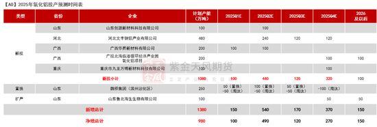 氧化铝新增产能以新投产线为主,并向沿海城市转移;