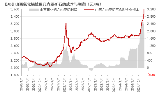 随着矿石产量逐年下滑,且未来无有效增量预期,我们预计2025年国产铝土矿价格仍有进一步抬升空间。