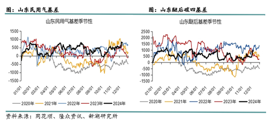2024年第一季度,临近交割月,PG主力受仓单压制,基差偏强,2月下旬,主力切换到2404合约,开启新的一轮仓单注册,基差走弱。从第二季度开始,民用气基差较去年表现偏强,主要原因在于市场对原油基本面的预期偏弱,LPG进口端顺畅,未来基本面较难强势,且随着仓单的逐渐增加,PG期货承压,另一方面,现货价格主要依据炼厂库存调节,更注重当下的供需情况,对油价的反应不及期货盘面。浙江和上海,炼厂供应充足,现货价格处于洼地,因此华东民用气基差较华南和山东偏弱。因2023年下半年,烷基化油开始征收消费税,醚后碳四受此拖累,价格下行,因此今年上半年,醚后碳四基差较去年下跌较多。