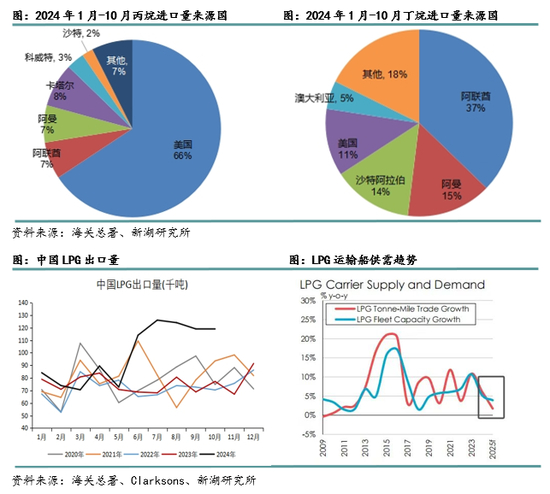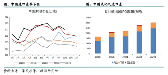 以海关总署数据为例,2024年1月至10月我国进口液化气3018万吨,同比增加9.3%,其中进口丙烷2473万吨,进口丁烷515万吨。今年1-10月,我国自俄罗斯进口液化气35万吨,其中丙烷22.86万吨,丁烷11.7万吨。