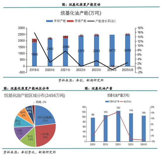 展望2025年,烷基化装置投产放缓,2025年仅山东裕龙石化和广州石化共计60万吨/年的产能计划投产。当前烷基化油产能较多,国内消费不足,且消费税政策执行后,烷基化装置的开工率不到5成,后续发展空间有限。