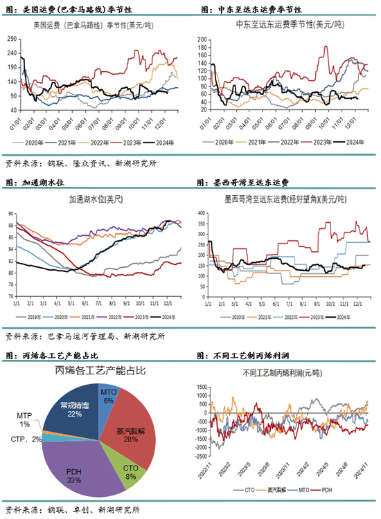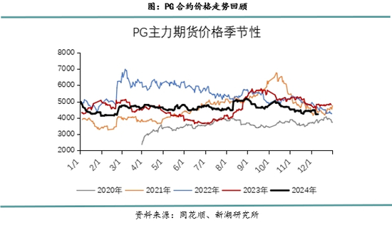 2024年上半年,加通湖水位低,导致巴拿马运河通行不畅,海运费处于高位,进口成本存支撑,同时国内PDH和顺酐均有多套装置投产,化工需求强劲,拉动进口量最高达到347万吨/月,后期随着加通湖水位上升至正常水平,供应端的驱动减弱。因中国需求疲软,油价震荡下行,OPEC+多次延长减产时间来稳定油价,但市场预期2025年的原油基本面仍然偏弱。因淡季囤货,年底贸易商采购行为减少,叠加油价下行风险尚未解除,PG震荡偏弱运行。