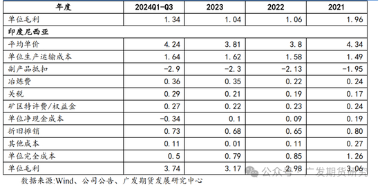 自由港公司为全球最大的铜矿企业之一,截至2023年末共有铜储量约4,275万吨(权益法),2020年-2023年铜产量自145.42万吨增长至191.05万吨,2023年铜产量约占全球开采铜总产量的6%。自由港旗下矿山主要分布在北美、南美和印度尼西亚等地区,其中美国Morenci铜钼矿、秘鲁CerroVerde铜钼矿和印度尼西亚Grasberg矿区产量较高,为自由港公司主力矿山;未来潜在的增量项目包括Bagdad、Safford、ElA bra和Kucing Liar。自由港公司铜单位生产运输成本逐年递增,由2021年的1.93美元/磅增长至2024年前三季度的2.49美元/磅;单位净现金成本保持相对稳定,运行区间约为1.3-1.6美元/磅。