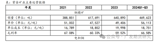 2022年以来,紫金矿业铜精矿单位生产成本稳定在18,500-20,000元/吨区间;而电积铜和电解铜单位成本则存在不同程度的抬升,2023年分别同比增长20.14%、31.34%,2024年1-9月涨幅放缓。在2024年高铜价背景下,得益于铜产品生产成本的稳定,1-9月紫金矿业铜精矿、电积铜和电解铜毛利率同比分别上涨6.10、3.32和13.60个百分点。