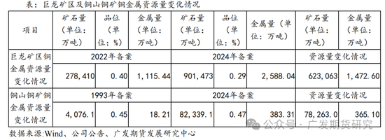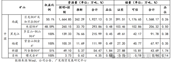 多宝山-铜山铜矿位于黑龙江省黑河市嫩江市,紫金矿业于2007年、2016年通过两轮收购实现多宝山铜矿、铜山铜矿权益100%持有。2024年6月,紫金矿业发布公告,铜山铜矿新增铜金属资源量365.1万吨,本次新增后,多宝山铜业保有铜金属资源量超过560万吨。