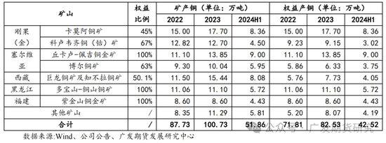 紫金矿业为大型跨国矿业集团,铜资源储量及产量均居国内铜矿企业之首。截至2024年6月30日,紫金矿业共有铜资源量10,466.84万吨,其中保有证实储量和可信储量共4,382.31万吨,占比42%。紫金矿业在海外15个国家和中国17个省(自治区)拥有超30座大型、超大型矿产资源开发基地,其中海外主要铜矿分布在塞尔维亚、刚果(金)、秘鲁和蒙古等国,国内主要铜矿分布在西藏、新疆、黑龙江和福建等地,按照紫金矿业截至2023年末各铜矿资源量(权益法)测算,海外铜矿资源量占比超过70%。