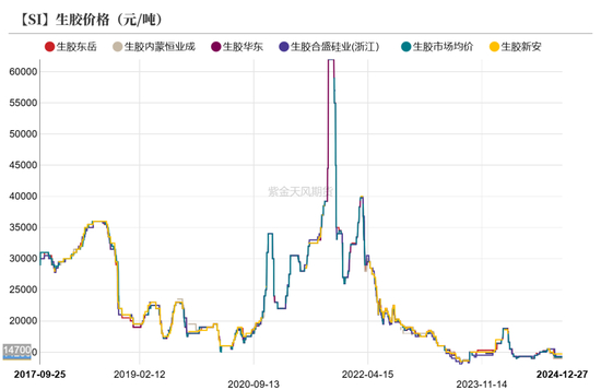 • 近期有机硅市场稍有回暖,下游需求带动下市场成交量提升,短期内有机硅市场稳中有上探趋势。截至12月27日,DMC华东价格较12月20日环比持平于13000元/吨,华东生胶环比持平于14200元/吨,华东107胶环比持平于13400元/吨,硅油价格环比持平于15350元/吨。