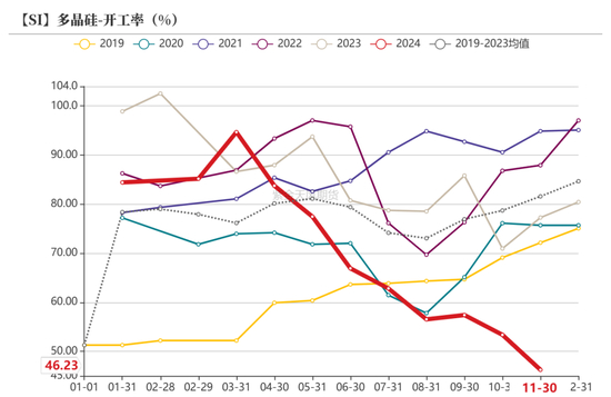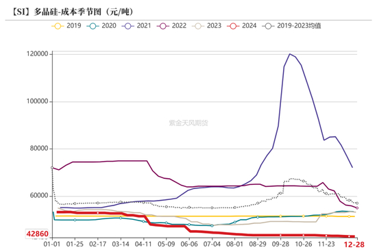 • 上周工业硅生产成本较为稳定,12月电价变动不大,且在产企业规模较大且多配备余热发电装置。上周工业硅平均生产成本环比持平于12229.17元/吨;毛利润、毛利润率环比分别持平于-429.17元/吨、-3.64%。
