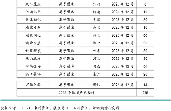 2025年共有20套新增装置计划投产,其中一季度重庆映天辉20万吨、湖北葛化20万吨产能投产,合计40万吨;二季度山东青岛海湾30万吨、贵州江山化工30万吨、山东氢力新材料15万吨、河北吉诚15万吨、内蒙古内蒙兴发15万吨、河北临港15万吨产能投产,合计120万吨;三季度四川鑫盛源5万吨产能投产;四季度贵州金泊10万吨产能10月投产;另有其他11套装置,包括江西九二盐业6万吨、河南永银10万吨、天津渤化30万吨、湖北可赛10万吨、湖北润化60万吨、湖北吉星30万吨、甘肃耀望30万吨、河北唐山三友30万吨、河南金海60万吨、浙江镇洋20万吨、浙江万华化学14万吨产能底投产或投产时间不确定,合计300万吨。若暂不计算预计年底和不确定投产的产能,全年新增产能共计175万吨,产能增速3.35%。