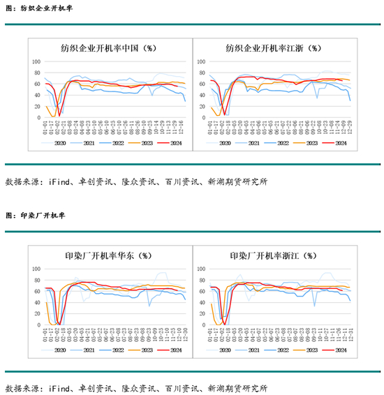 纺织印染行业整体平稳,国内纺服零售总额经过去年高增长后,今年累计同比下降至1%左右;布产量累计同比2%左右,相较去年负增长状态有所回暖,而纱产量累计同比-1%左右,与去年基本持平,但两者均和往年同期有15%的差距。中国纺织企业开机率总体处于60%左右的水平,与去年持平,浙江纺织企业开机率处于65%左右的水平,略高于去年;印染厂开机率处于往年平均水平,下半年略低于去年同期。国内纺服零售总额增速恢复小幅增长状态,对烧碱的需求保持平稳状态。