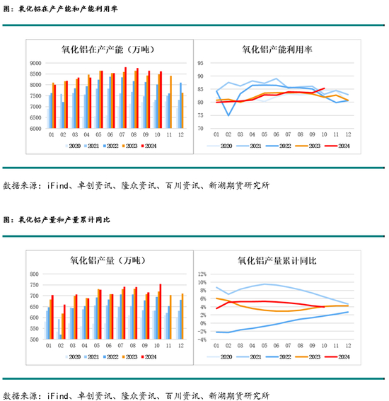 氧化铝2024年产能进一步提升到10502万吨,其中新增产能投产160万吨,分别为重庆市九龙万博60万吨产能6月投产,滨州沾化汇宏100万吨产能10月投产。