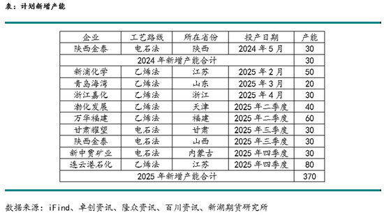 2025年PVC产能预期3460万吨,其中新增产能370万吨,产能增速11.97%。