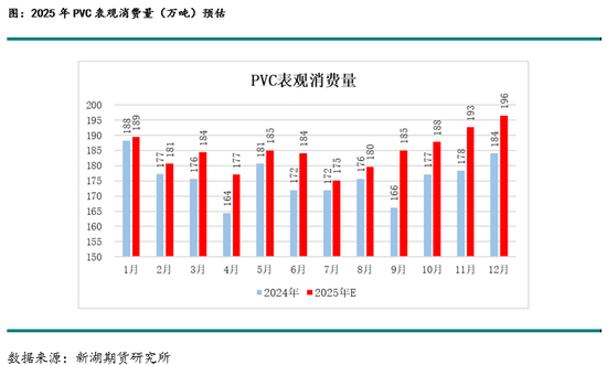 预期2025年PVC表观消费量2220万吨,产量2402万吨,净进口-185万吨,表观消费累计同比5.03%。预期2025年电石价格预期保持相对较低水平,而PVC开工率主要受利润和出口影响,由于房地产市场需求仍然不足,且预期将较2024年进一步下降,年初库存水平高企,春节期间累库幅度大且库存绝对水平高,因此预期PVC供应将有所走低,而印度BIS政策的实施将对出口造成显著影响。因此,即使有较高的产能增速,在低利润水平的压力下,产量增速有限,但氯碱企业利润或受烧碱端支撑,PVC产量或将保持高位,表观消费量将由出口的减少而有所提升。