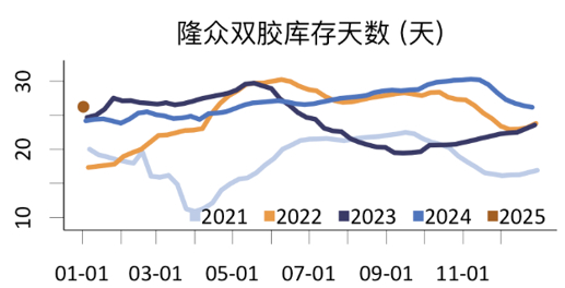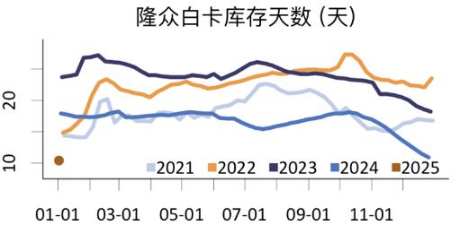 近期外盘针叶浆、阔叶浆价格止跌,外盘阔叶浆从2024年年中外盘报价持续走弱,2025年1月份宣布提涨20美金,外盘针叶浆既10月提涨20美金、报平两轮后,1月份宣布10美金至795美金,提振市场情绪,国内买家接货积极性较高,对浆价有一定支撑。全球供应仍处于宽松环境,欧洲港口库存窄幅去库但仍处于高位。