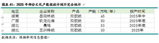 2025年国内和国外纸浆和造纸产能均有投放预期,下游造纸投放规模更大,需求增速预计高于供应增速,后期库存预期在中低水平。