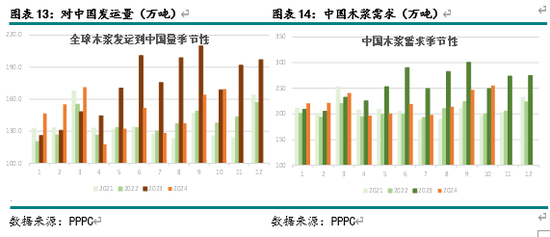 从年内变化来看,一季度市场对未来预期较好,木浆进口处于高位,二季度外盘地缘政治风险因素持续发酵,国际市场发运下降,进口下滑,三季度国内市场信心转弱,下游采购不足,进口跌至底部,四季度小幅反弹。