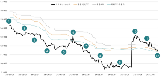 2024年硅价整体偏弱运行为主,下行趋势相对清晰。