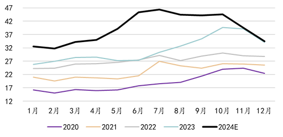 根据年初统计的各项目落地规划,全年预计将有100多万吨产能落地,但由于行业基本面偏宽松,企业利润下降,较多产能推迟了投产。至年底12月,出掉部分出清产能,工业硅实际净新增产能约30万吨,年底较多项目或将延后至2025年投产。
