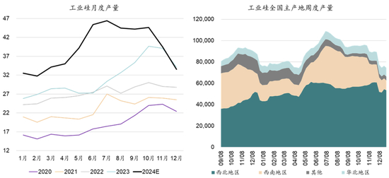 根据季节性产量以及主产地周度产量分解,今年华北、西北地区产量维持高增长,而丰水期西南供给对年中行业总产量的大幅增长贡献最大。上半年枯水期西南的低开工以及年底西北的环保限产,对产量的压制相对明显。