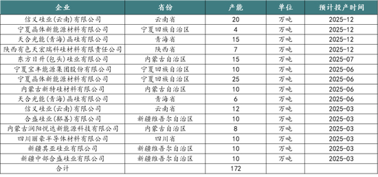 根据统计2025年仍有一批新产能计划投放,总产能预计有170万吨左右,加上2024年部分投产项目,合计计划新增产能可达到230万吨左右,但根据光伏行业现状,预计或将有一批产能继续推迟或取消。。