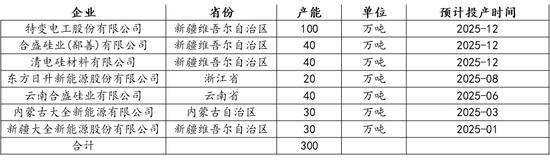 根据统计,2025年项目预计有300万吨新产能投放,加上2024年延后的约70万吨产能,预计2025年排产规划将有370万吨新产能落地。但由于行业基本面的变化,以及光伏产业链的调整,预计其中较大部分的产能或将延后。