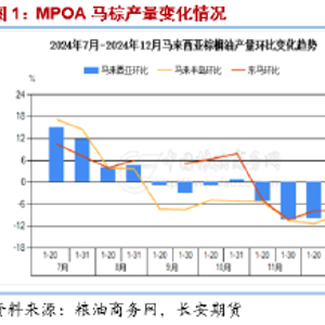 马来西亚棕榈油协会(MPOA)最新数据称,2024年12月马来西亚棕榈油产量预估为149万吨,环比下降8.33%,其中马来西亚半岛的产量环比下降8.82%,沙巴的产量环比下降11.07%;沙捞越的产量环比增加0.14%;东马来西亚的产量环比下降7.62%。