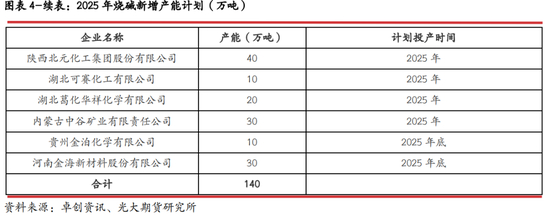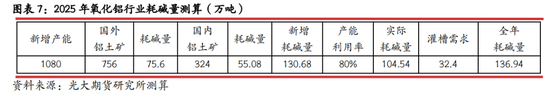 ·2025年国内氧化铝行业产能增速将超过10%,但由于行业对烧碱单耗较低,全年氧化铝行业对烧碱需求增量仅为137万吨左右。