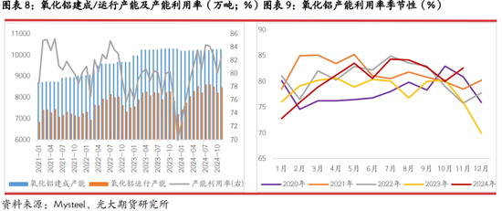 第五,氧化铝产能落地存在较大不确定性。2025年氧化铝行业投产1080万吨属于保守预计,行业乐观预期下增产或达到1200-1300万吨。但是,氧化铝行业2025年将同时面临国内供需压力扩大、国际扰动因素提升等多种局面,产能能否如期落地有待验证。一方面,氧化铝价格重心2025年将有所下移,倘若价格跌破成本线3500元/吨及以下,行业产能投放延期、开工负荷下降情况或将出现,从而导致烧碱需求不增反降。另一方面,当前氧化铝原料铝土矿进口占比仍达到70%,且主要从几内亚、澳大利亚地区进口。几内亚近两年局势稳定性欠佳,进口矿对氧化铝生产的制约性仍较大,或将限制新增产能投放节奏。另外,电解铝对氧化铝的需求存在天花板限制,或加剧氧化铝供需格局宽松预期,产能落地不确定性也将进一步提升。