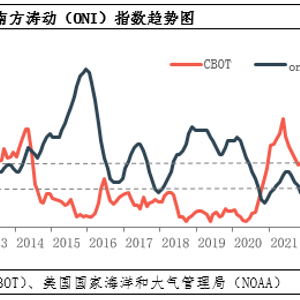 气候对大豆的生长产生一定影响。从CBOT大豆期价与监测极端气候的ONI指数变化趋势来看,处于厄尔尼诺气候下期价多处于相对底部(2015年、2018-2019年等),拉尼娜气候下多处于相对高位(2016-2017年、2021-2022年)。冬季是南美大豆的生长期,主产国为巴西及阿根廷。过去二十年出现的拉尼娜现象对南美大豆产量产生了不同的影响。