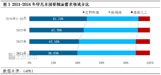 对于B40生物柴油政策,印尼政府表示在强制执行期开始前将有大约1个半月的过渡期,企业在此期间消耗剩余的B35生物柴油库存,并对相关技术进行调整。春节后B40落地预期较高,对棕榈油需求存在提振。近年印尼生物柴油对棕榈油需求量占比逐年提升,2024年1-10月生物柴油需求量941万吨,占比47.7%,预计2024年印尼生物柴油行业对棕榈油的需求量为1160万吨左右。实施B40后,预计对棕榈油需求量增加250万吨左右,需求端对棕榈油价格形成支撑。