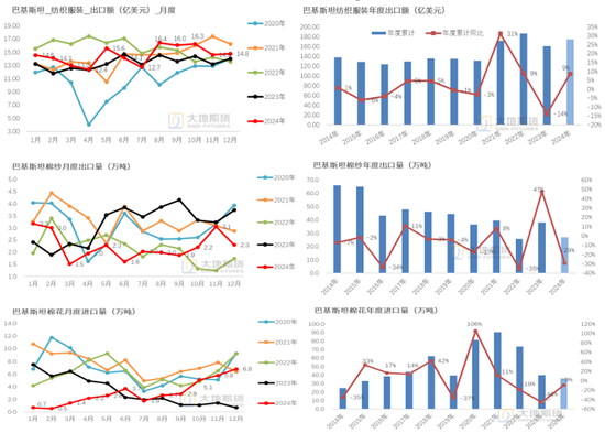 巴基斯坦:2024年12月纺织服装出口同比+6%,1-12月出口同比+9%。