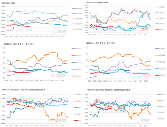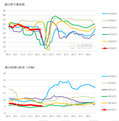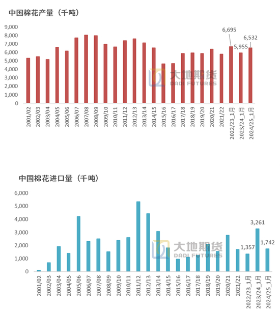 进口棉政策:中性2025年关税配额已经下发,港口进口棉加快清库,目前关税配额价格又有走高,在1600元/吨附近。