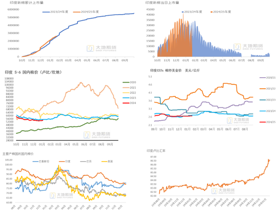 2)印度新棉累计上市量约在270万吨,CCI在MSP下累计收购量122.4万吨,棉价纱价震荡;