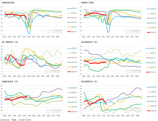产业链库存:中性布厂春节前少量备货棉纱,纱厂棉纱库存略减,但织厂已陆续放假,织厂成品库存仍没有下降。