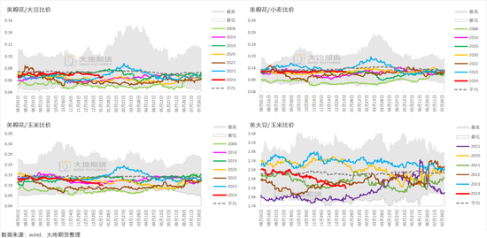 棉/玉米比价走低,棉/大豆比价略反弹低