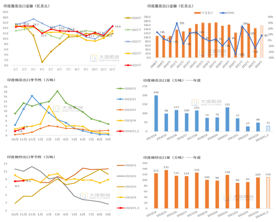 印度:2024年12月服装出同比口+12.9%,1-12月出口同比+8%。