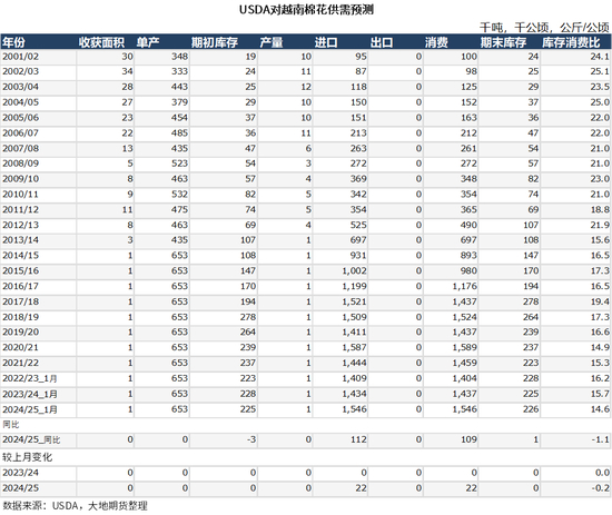 其中2024年11月份澳棉对中国出口2.5万吨,同比-35%,环比-19%。11月份澳棉对越南出口2.6万吨,同比-28%,环比-41%。