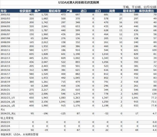 澳大利亚平衡表:USDA上调澳大利亚棉花产量及出口