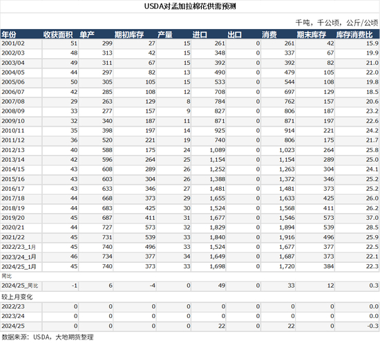 USDA在1月报告中上调中国、美国、澳大利亚产量,小幅下调巴基斯坦棉花产量,全球棉花产量明显调增,期末库存增加,影响偏空。但因中国增产市场已基本交易充分,USDA1月调整更多是基于现实进行修复,对市场实际影响有限。