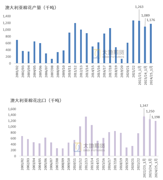 5)澳大利亚2024年11月份棉花出口明显下降。