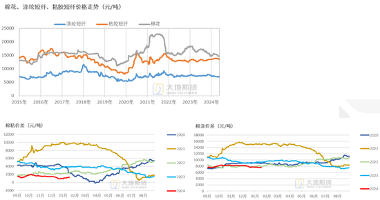 涤短上涨、粘短止跌,棉/化纤价差在低位