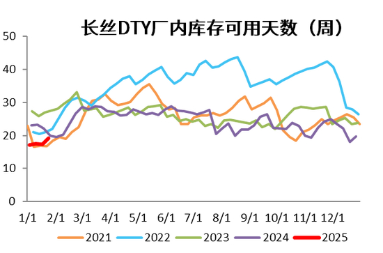 截至2月6日终端织造企业原料(涤丝)库存平均水平为10.19天左右,较上周减少0.44天。节后春节氛围尚存,且目前国内需求仍在冰点,国外需求表现较不明显,各厂前期多有原料备货,市场预期谨慎观望为主,多数处假期观望,随着部分工厂复工开工缓步提升,原料库存窄幅减少。