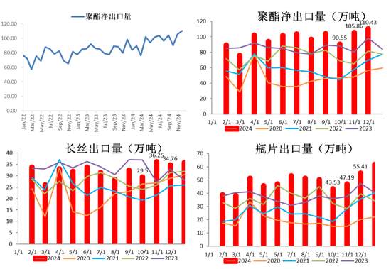 12月聚酯净出口量环比增加,瓶片出口维持高增速