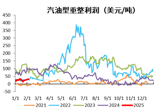 截至2月5日,PXN最新为199.25美元/吨,环比上周+11.25。烯烃裂解差虽然略有扩大,但是仍然在200附近的亏损水平,抑制亚洲石脑油裂解装置需求。另外,汽油消费基本稳定,石脑油的总体采购刚需为主。