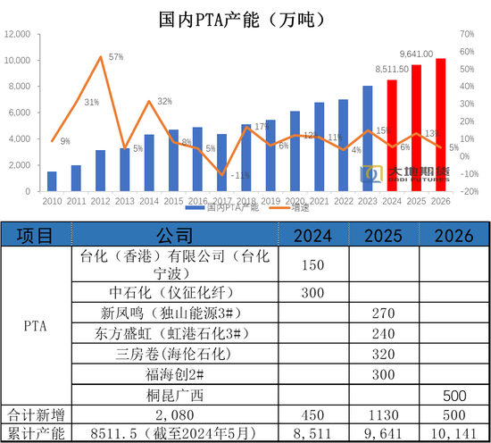 今年以来,国内已有两套PTA新装置投产,合计产能450万吨。其中,台化150万吨装置于3月底投产,;4月初仪征化纤300万吨PTA新装置两条线相继投料生产,均已产出合格品。PTA总的产能已经达到8511.5万吨,减去长停(停机时间半年以上)的装置,有效产能在7679万吨。
