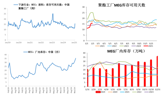 节前聚酯工厂乙二醇原料备货天数15.5天(环比+4天)。