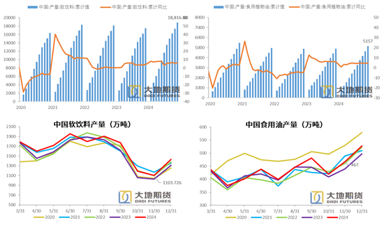 12月软饮料产量环比和同比均增加,食用油环比同比均增加