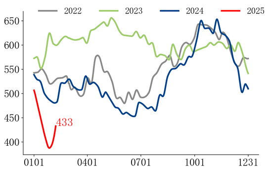 其次是生产企业开工不足:锰硅最新开工率40.69%,环比下降0.54%,产量19.33万吨,环比下降1.78%。春节假期刚过,部分企业还处于休假状态,复产进度较慢,导致锰硅产量保持低位。
